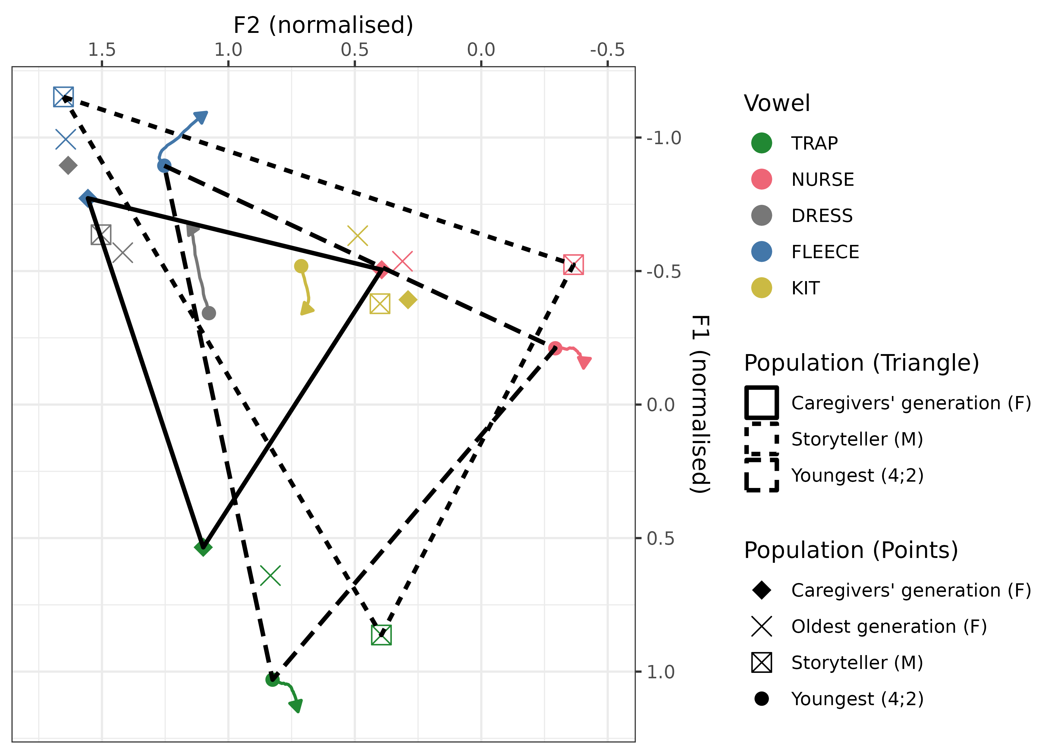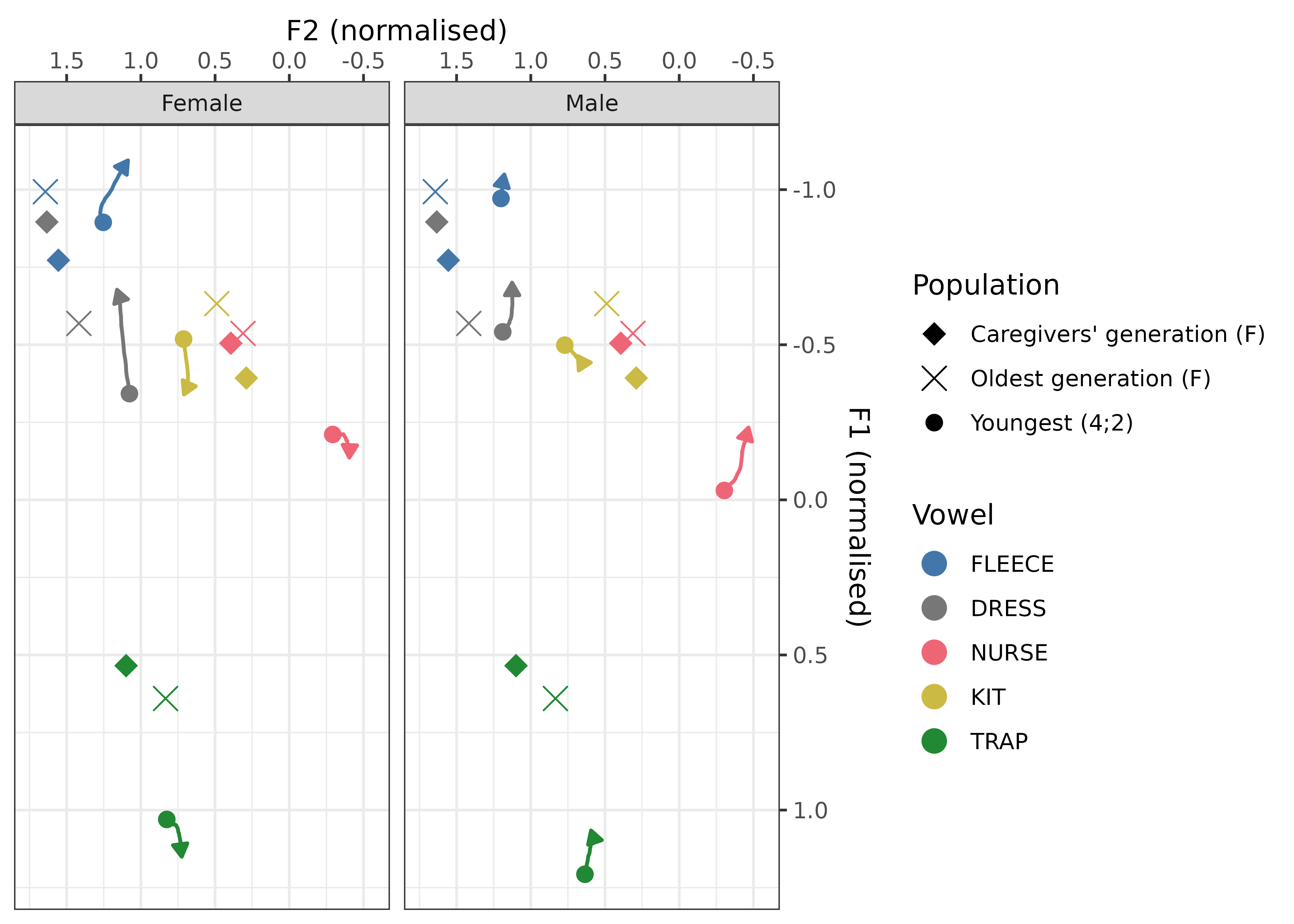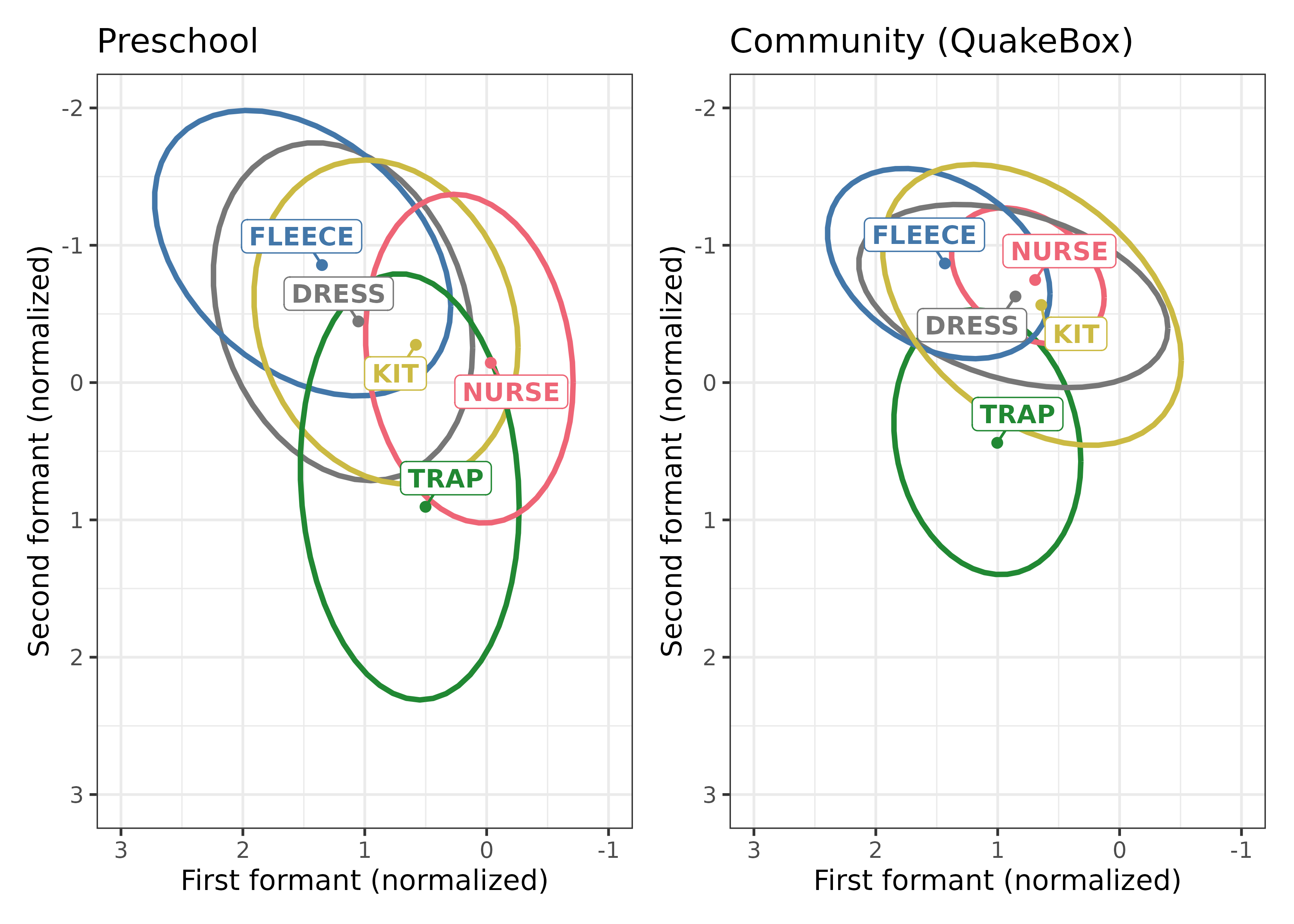 ‘Front vowels’ (NZE) = fleece, dress, nurse, goose, trap, kit
